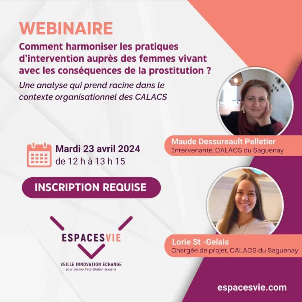 Maude Dessureault-Pelletier et Lorie St-Gelais, intervenantes sociales en exploitation sexuelle au @lecalacsdusaguenay, y présenteront le rapport intitulé « Renforcement et harmonisation des pratiques d’intervention du CALACS du Saguenay auprès des femmes qui vivent avec les conséquences de la prostitution ».